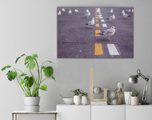 Alege acest Tablou PESCĂRUȘI PE ASFALT din modelele noastre cu tematică Tablouri cu natură, Tablouri cu natură > Tablouri cu păsări și bucură-te de un decor atractiv. Tablou PESCĂRUȘI PE ASFALT este imprimat la calitate foarte bună pe pânză canvas întinsă pe o ramă de lemn invizibilă ce se prinde foarte ușor pe perete. Folosim tehnologie de imprimare de ultimă generație pentru a produce tablouri cu indice mare de rezistență UV, praf și umezeală.